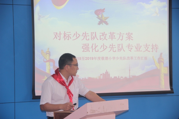在會(huì)議室里,毛義祥校長以《對(duì)標(biāo)少先隊(duì)改革方案,強(qiáng)化少先隊(duì)專業(yè)支持》為主題,緊扣“鞏固組織基礎(chǔ)”、“提升隊(duì)伍素質(zhì)”、“夯實(shí)陣地建設(shè)”和“創(chuàng)新活動(dòng)開展”四個(gè)方面介紹了學(xué)校一年來的少先隊(duì)改革工作情況,根據(jù)《少先隊(duì)改革方案》,學(xué)校扎實(shí)推進(jìn)改革,促進(jìn)少先隊(duì)工作制度化、專業(yè)化、系統(tǒng)化。