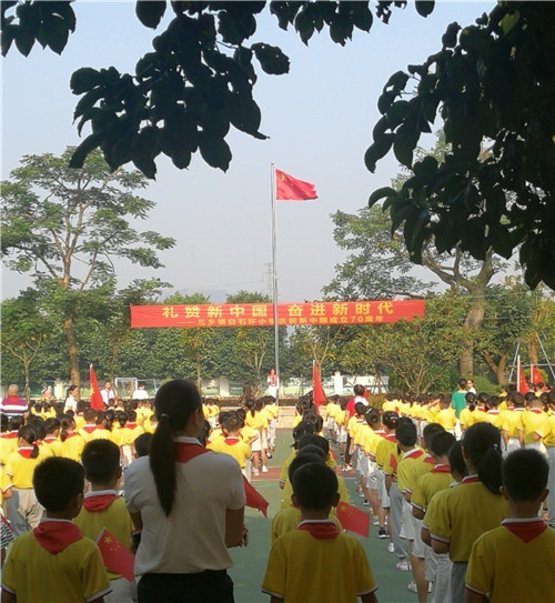 為熱烈慶祝中華人民共和國成立70周年,進(jìn)一步激發(fā)廣大師生的愛國熱情,弘揚(yáng)中華民族精神,三鄉(xiāng)鎮(zhèn)白石環(huán)小學(xué)密切配合市教育工委、市教體局的全市大型升旗活動, 9月30日上午8時,在籃球場舉行全校的“禮贊新中國 奮進(jìn)新時代”升旗儀式。