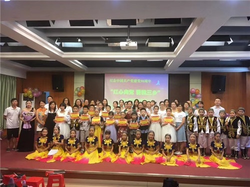 值中國共產(chǎn)黨建黨98周年之際,為激勵廣大黨員干部教師和少先隊員“不忘初心、牢記使命”,加強熱愛祖國,熱愛共產(chǎn)黨的主題教育,2019年6月20日下午,白石環(huán)小學(xué)在階梯室舉行了“紅心向黨 愛我三鄉(xiāng)”師生鋼琴演奏會。該項活動由中共中山市三鄉(xiāng)鎮(zhèn)白石環(huán)小學(xué)黨支部主辦,由學(xué)校藝體科組、鋼琴社團和舞蹈社團聯(lián)合承辦。