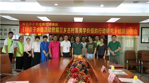 2019年6月17日下午,三鄉(xiāng)鎮(zhèn)白石環(huán)小學(xué)的市立項課題《以親子水墨活動挖掘三鄉(xiāng)古村落美學(xué)價值的行動研究》迎來了結(jié)題鑒定會。蒞臨指導(dǎo)的專家有中山市教體局教研室美術(shù)教研員沈文老師,中山市教育學(xué)會美術(shù)書法教學(xué)專業(yè)委員會劉堅副會長,中山市美術(shù)家協(xié)會陳永生副主席等。學(xué)校行政、課題組成員和水墨家委會代表共近二十人參加了本次的結(jié)題會。