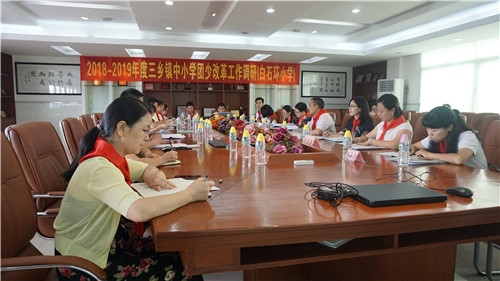 為深入推進團少改革,促進團少工作制度化、專業(yè)化、系統(tǒng)化。2019年6月4日三鄉(xiāng)鎮(zhèn)白石環(huán)小學(xué)迎來了由三鄉(xiāng)鎮(zhèn)教工黨委副書記梁添帶,三鄉(xiāng)鎮(zhèn)團委副書記、三鄉(xiāng)鎮(zhèn)少工委總輔導(dǎo)員林雪萍和各中小學(xué)德育主任、大隊輔導(dǎo)員一行組成的調(diào)研組進行團少改革工作調(diào)研。