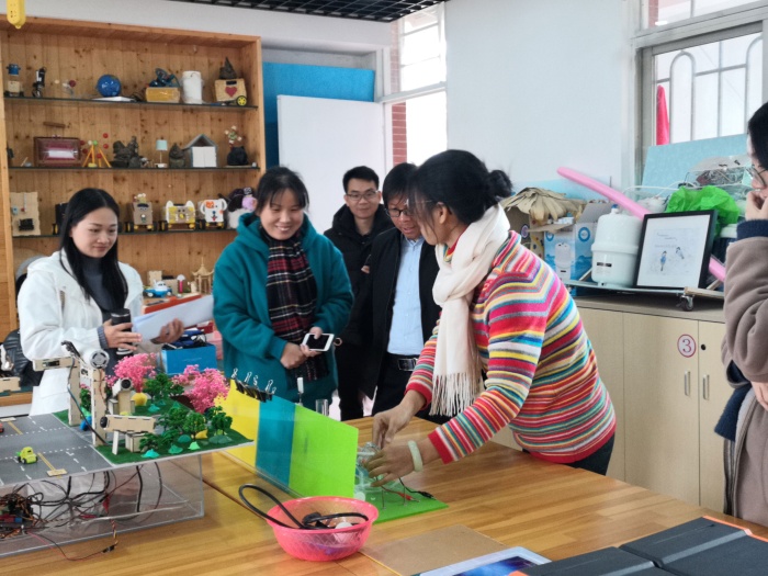 鄭倩茹老師作為新進(jìn)工作室主持人,為專家們闡述了工作室的研究方向,如何讓科學(xué)課融入創(chuàng)客教育,讓科學(xué)探究可視化的一些做法,受到現(xiàn)場(chǎng)專家和參與老師們的肯定。