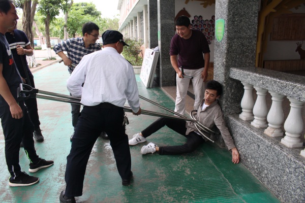 4月3日下午4時(shí),防恐演戲正式開始,學(xué)生向日常一樣,進(jìn)行大課間,校園內(nèi)一聲警報(bào)聲,各班學(xué)生迅速組成隊(duì)伍,有序地逃向安全地點(diǎn),校園內(nèi)安全防線迅速形成,快速將由老師扮演的歹徒制服,全校師生快速到位,安全撤離。