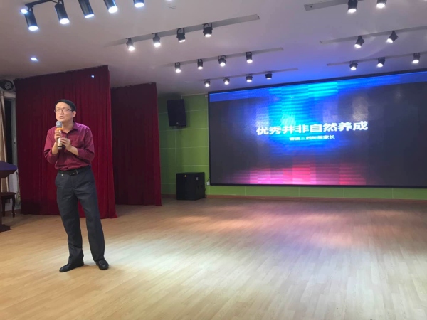 會議有四個流程。首先是劉杰校長介紹了對孩子的教育——《優(yōu)秀并非自然養(yǎng)成》。劉校長的演講簡潔、深刻,贏得了家長們的喝彩。緊接著的是中年級學生代表才藝表演,讓家長和教師們感受到了孩子的活力與天真可愛,不由自主地響起陣陣掌聲。然后是廣東省名班主任張麗娟老師的教育講座——《讓孩子自主學習,走向成功》。張老師用飽滿的熱情、激動人心的言語以及發(fā)人深省的例子來傳授教育孩子的方法,家長們個個聚精會神地聆聽。最后一項是由各班班主任主持各班家長會,各科任教師在班級分別向各位家長匯報學生在該學科的學習情況,并提出學習等各方面的家教建議,家長們認真聆聽,積極與教師交流討論。