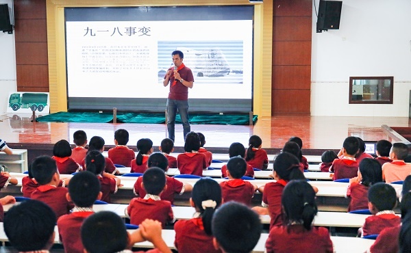 9月18日上午,新圩小學(xué)少先隊(duì)大隊(duì)部組織四年級(jí)大隊(duì)全體隊(duì)員在階梯教室進(jìn)行紀(jì)念“九一八事變”大隊(duì)活動(dòng)。