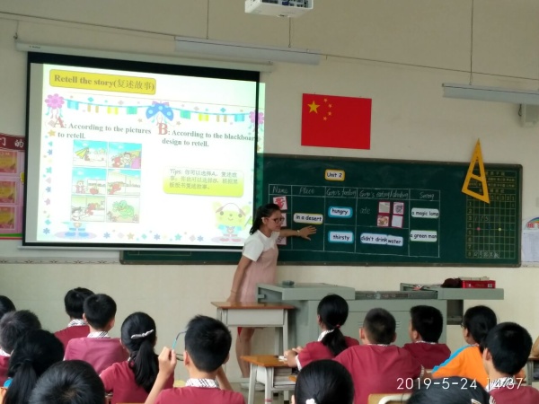 李麗蓉老師上課的內(nèi)容: Unit 2 A Magic Day。這是Book 6的Story部分。她善于運用故事教學(xué)吸引學(xué)生的注意力,讓學(xué)生在輕松愉快中吸收新知。她采用了閱讀前、閱讀中和閱讀后三個環(huán)節(jié)。閱讀前激活學(xué)習(xí)背景,激發(fā)學(xué)生學(xué)習(xí)的興趣。閱讀中,李老師設(shè)計一些問題引導(dǎo)學(xué)生一步步理解故事。閱讀后通過復(fù)述故事、role play和設(shè)計開放性的問題,引導(dǎo)學(xué)生們進(jìn)行語言輸出,提高學(xué)生的語用能力。校外導(dǎo)師游佳校長的課堂更是幽默風(fēng)趣,.她上課的內(nèi)容是Unit 4 Going outing,這是一節(jié)五年級的課。游校長用自己的實際情況創(chuàng)設(shè)了一篇語篇,從語篇導(dǎo)入,讓學(xué)生整體感受英語,后面并以語篇輸出。游校長以豐富的肢體語言,有趣的游戲調(diào)動學(xué)生們學(xué)習(xí)的積極性,整個課堂氣氛積極熱烈,學(xué)生樂于參與課堂,快樂地學(xué)習(xí)。?