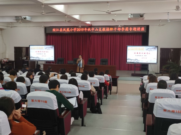 李莉老師是在我國東西部扶貧協(xié)作教育幫扶大政策下,由中山市東區(qū)組團(tuán)派到綏江縣的教育扶貧掛職干部,來自三鄉(xiāng)鎮(zhèn)雍陌小學(xué),將在鳳凰小學(xué)支教一年。8月30日,李老師根據(jù)組織安排來到鳳凰小學(xué)。經(jīng)過一個(gè)月的深入課堂了解,她發(fā)現(xiàn)隨著2019年全國統(tǒng)編版教材的統(tǒng)一使用,鳳凰小學(xué)語文老師面臨在教材解讀中的許多難題。李老師結(jié)合自己的經(jīng)驗(yàn),利用兩個(gè)多星期再次通讀新版的教材,查閱了大量資料,于10月22日下午在學(xué)校開展了一次主題為“統(tǒng)編教材的變化”的專題講座。