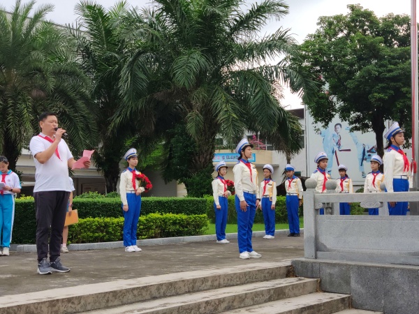 陳苕校長在開學(xué)典禮上作了熱情揚溢的愛國主義主題講話。他深情地講述了近代以來中國受西方列強的侵略,改革開放中國的銳意進?。凰院赖馗吆簟拔逍羌t旗,你是我的驕傲,五星紅旗,我為你自豪,為你歡呼,我為你祝福,你的名字,比我生命更重要”;他向全體同學(xué)發(fā)出號召:“我們都是護旗手,我們都愛我們的祖國”!