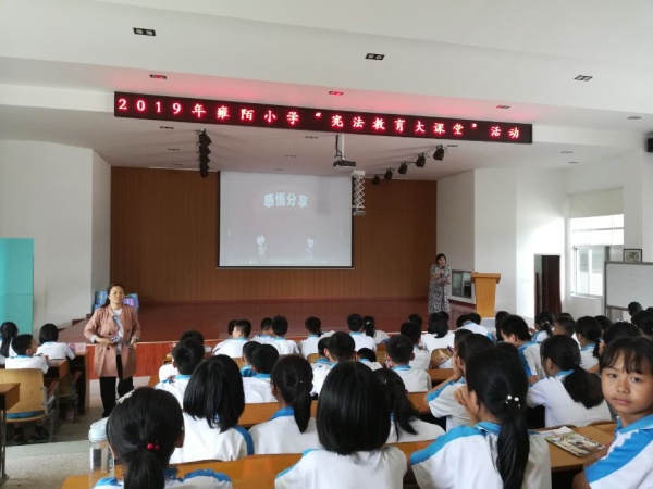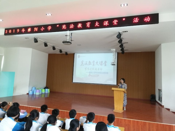 為增強(qiáng)學(xué)生的法律意識,提高自我保護(hù)能力,營造文明、平安、和諧的社會育人環(huán)境,5月30日下午,雍陌小學(xué)開展“憲法教育大課堂”活動,由德育主任譚建玲為六年級全體同學(xué)舉行了別開生面的法制教育講座。