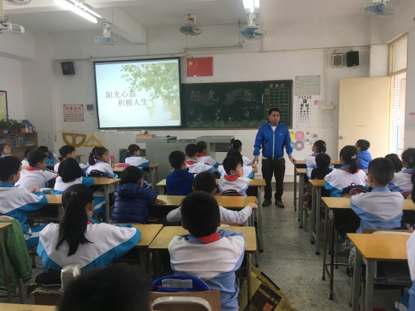 學(xué)校培養(yǎng)了一個(gè)又一個(gè)積極樂(lè)觀的學(xué)生。你瞧,三、四年級(jí)的學(xué)生正在認(rèn)真聆聽《陽(yáng)光心態(tài)》主題班會(huì)的內(nèi)容。