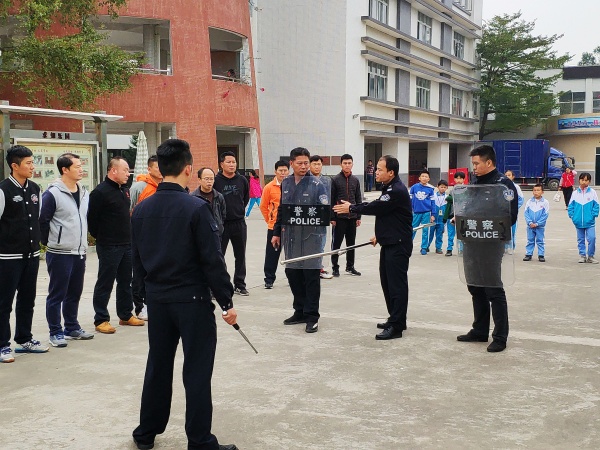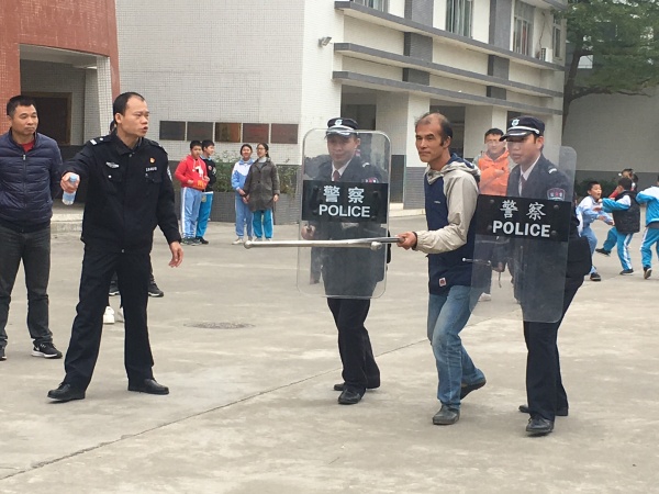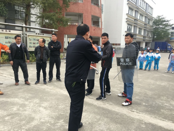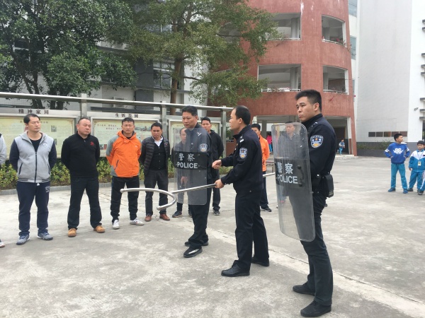 1月10日中午12:30,德育處組織了全體護衛(wèi)隊成員開展了“防暴防恐演練”活動。此次活動還邀請了肖家村派出所黃偉龍警官及他的隊員一起到現(xiàn)場指導工作、與三鄉(xiāng)110指揮中心作好溝通聯(lián)系。