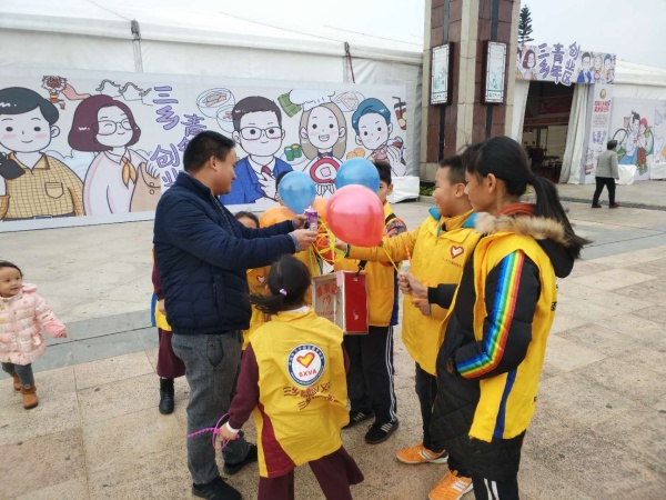 十二月末的冬日,寒風襲來,寒流籠罩著整個大地,可近日,三鄉(xiāng)這座小鎮(zhèn)卻沸騰熱鬧起來,被濃濃的愛心暖流包圍著,這源于三鄉(xiāng)文化廣場開展的第十一屆旅游美食文化節(jié)活動中,那一個個無私奉獻的最美身影——親子義工。12月30日上午,雍陌小學二十二對親子義工參加了鎮(zhèn)團委聯(lián)合鎮(zhèn)志愿者協(xié)會舉辦的大型慈善義賣募捐活動。