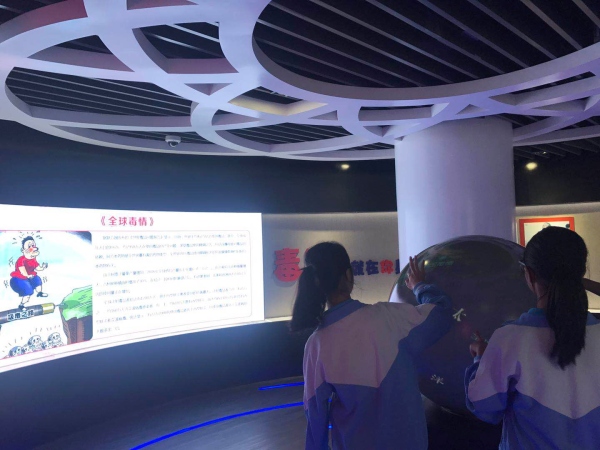 轉(zhuǎn)過一個彎,來到了體驗互動空間。這里有最新型毒品危害介紹的VCR展廳、拍攝圖片后自動生成吸毒后的人體變化,還有參加與各種防毒、抗毒的小游戲,學(xué)生們一時之間又興奮起來了。有的學(xué)生戴上VCR眼鏡來了解毒品知識與毒品的危害。有的在拍相,看到自己英俊的臉上,如果是吸毒品的話,之后所變成的模樣,把大家都驚嚇住了。特別有的女同學(xué)都不敢去體驗這個游戲了。