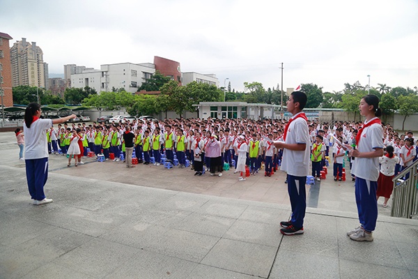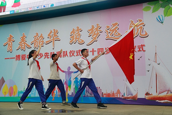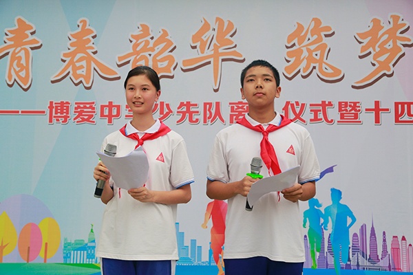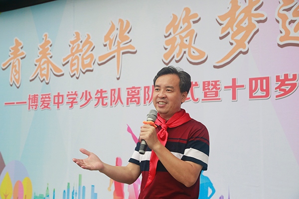 6月13日,是一個博愛中學(xué)初二年級少先隊員永遠銘記的日子,因為就在今天,他們光榮地離開少先隊組織,向更高的目標前進。這是他們成長道路上的一個里程碑,也是他們邁向青春的第一步。