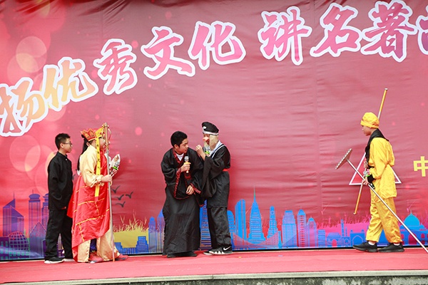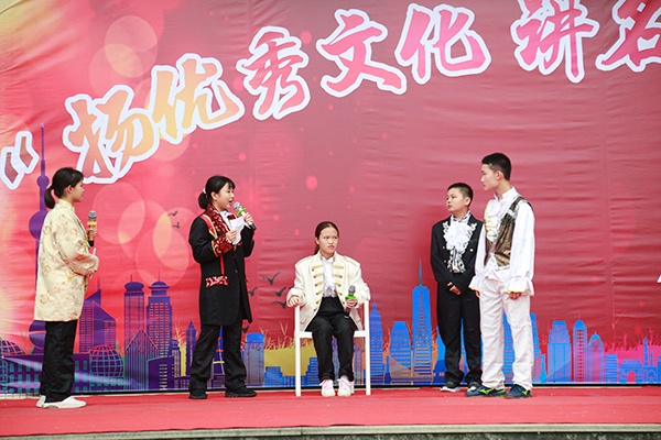 參加本次決賽共有十二支隊伍,選手們表演人數(shù)之多,服裝、道具鮮艷,吸引觀眾眼球,精準(zhǔn)有趣的語言、真摯的感情、惟妙惟肖的表演,將一個個名著故事中蘊涵的大道理演繹的精彩絕倫,整個比賽贏得了在場眾的一陣陣?yán)坐Q般的掌聲,選手們的精彩表現(xiàn)為觀眾奉獻(xiàn)了一場視聽盛宴。經(jīng)過一番激烈的角逐,二(5)班的節(jié)目《活著》,二(10)班的節(jié)目《三打白骨精》,二(6)班的節(jié)目《智取生辰綱》獲得一等獎。