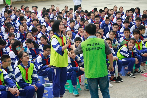 為進(jìn)一步加強(qiáng)學(xué)生毒品預(yù)防宣傳教育,提升在校學(xué)生識毒防毒拒毒的能力,學(xué)校開展多渠道,多方位,全面的教育形式,在3月26日下午第三節(jié),博愛中學(xué)請來了三鄉(xiāng)鎮(zhèn)禁毒辦志愿者,在學(xué)校廣場對初二級全體學(xué)生進(jìn)行了禁毒宣傳教育活動。