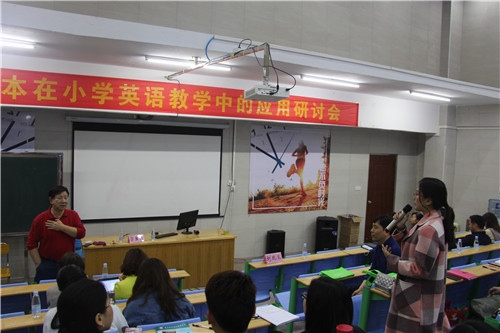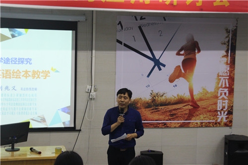 3月7日下午,繪本教學(xué)在小學(xué)英語教學(xué)中的應(yīng)用研討會(huì)在中山市紀(jì)中三鑫雙語學(xué)校舉行,教育部《英語課程標(biāo)準(zhǔn)》研制組核心成員、教育部中小學(xué)英語教師國培項(xiàng)目首席專家、英語特級(jí)教師劉兆義做《基于主題式教學(xué)途徑探究談小學(xué)英語繪本教學(xué)》的專題講座,研討會(huì)由三鑫小學(xué)自主試驗(yàn)部歐陽志華主任主持。