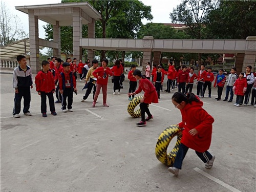 滾鐵環(huán)、滾輪胎,藏著多少男孩的童年記憶?同心鼓、拔河比賽、羽毛球接力,這是集體的較量。還有新鮮玩意兒:頂天立地、螃蟹背西瓜……