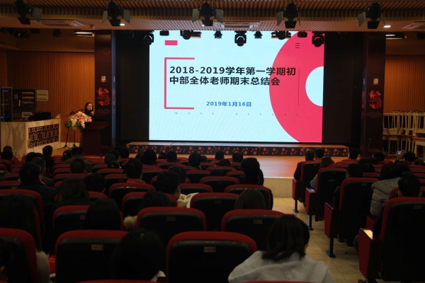 1月16日下午,經(jīng)過一個(gè)學(xué)期的忙碌,紀(jì)中三鑫雙語(yǔ)學(xué)校初中部2018——2019第一學(xué)期總結(jié)大會(huì)在學(xué)校報(bào)告廳如期舉行。會(huì)議由初一年級(jí)校長(zhǎng)黃建軍主持,初中部全體管理人員和老師參與了本次會(huì)議。