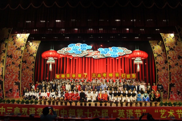 12月20日、21日晚,中山市紀中三鑫雙語學校體育館掌聲、歡呼聲連綿不斷,經(jīng)久不息。在萬眾期待中,三鑫初中部第十六屆“英語節(jié)”、“藝術節(jié)”文藝晚會在這里精彩上演。本屆晚會主題是 “文化引領夢想,藝術點亮青春”,來自初中部三個年級的師生精心籌備的一場視覺盛宴持續(xù)兩晚在這里上演,在元旦來臨之際,也用這道精彩的“文藝大餐”與大家共同迎接新一年的到來。