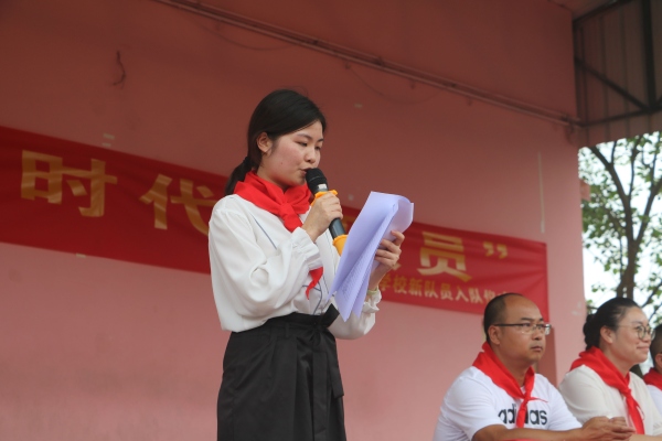學(xué)校黨支部書記、徐文校長(zhǎng)在發(fā)言中,深情地說道:“加入少先隊(duì)組織,成為一名少先隊(duì)員,是個(gè)體成長(zhǎng)的一個(gè)重要標(biāo)志,是人生進(jìn)步的第一步。在這個(gè)光榮的組織里,你才可以逐漸成長(zhǎng)為一個(gè)成熟的社會(huì)人。祝賀你們到達(dá)了人生進(jìn)步成長(zhǎng)的起點(diǎn),并跨出了重要的一步。愿你們諾行誓言,好好學(xué)習(xí),好好鍛煉,敢于超越,學(xué)會(huì)合作,勇于逐夢(mèng)。多為他人著想,多為集體著想,在少先隊(duì)組織中歷練,為胸前鮮艷的紅領(lǐng)巾增添光彩,為我們學(xué)校增添光彩,為你們的家庭增添光彩,為我們偉大的祖國(guó)增添光彩”。
