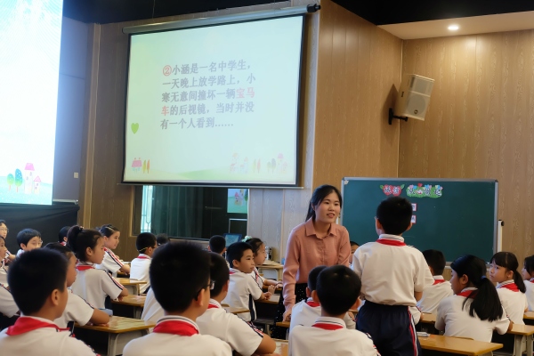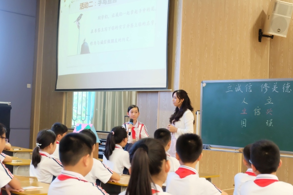 其中,四至六年級的課例比賽則是圍繞社會主義核心價值觀關于公民個人層面的價值準則“誠信”展開。4月25日,學校承辦了班會課比賽的最后一場,由來自不同市鎮(zhèn)學校的6位老師展示了6個課例。課例選題精準,設計新穎,內(nèi)容豐富充實,活動形式多樣,圍繞學生的生活學習實際提出問題,引發(fā)思考,展開討論,觸動心靈,全員參與,重點突出,從認知、感悟、踐行三個方面構(gòu)建了學生知行合一的班會活動模式,獲得了評委專家、老師們的一致好評。