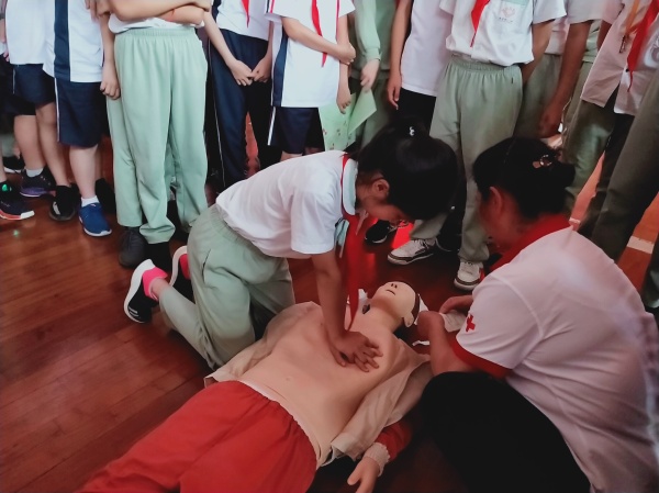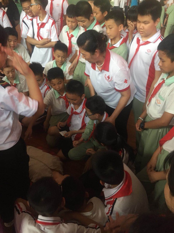 接下來(lái),醫(yī)療輔助隊(duì)的同學(xué)與紅十字會(huì)的老師們一起到各班中去,與隊(duì)員們一起體驗(yàn)了剛剛學(xué)習(xí)到的心肺復(fù)蘇知識(shí)。隊(duì)員們認(rèn)真演練,能做到學(xué)有所獲。