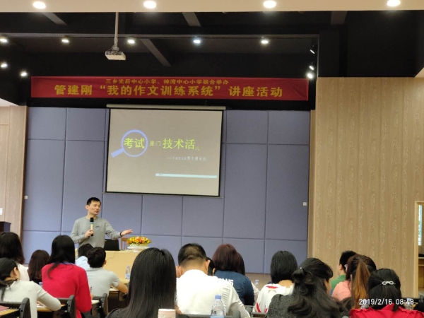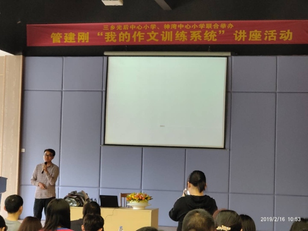一年之計(jì)在于春。2019年2月16日上午,新學(xué)期來(lái)臨之際,三鄉(xiāng)鎮(zhèn)光后中心小學(xué)攜手神灣鎮(zhèn)中心小學(xué),在光后百年講堂迎來(lái)了新學(xué)期第一位專家——管建剛老師。管建剛老師給大家?guī)?lái)了一場(chǎng)精彩的經(jīng)驗(yàn)分享會(huì),三鄉(xiāng)鎮(zhèn)文體教育局教研員王建國(guó)主任作為嘉賓出席了本次活動(dòng),全鎮(zhèn)各小學(xué)語(yǔ)文教師代表共260多人聆聽了這場(chǎng)講座。