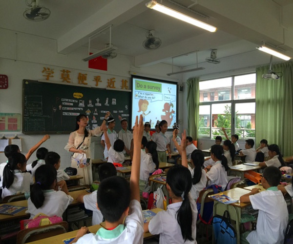 平東小學的鐘文利老師執(zhí)教了四年級下冊Unit 6 Jobs的詞匯課,課堂上,師生配合默契,學生討論熱烈、氛圍活躍。