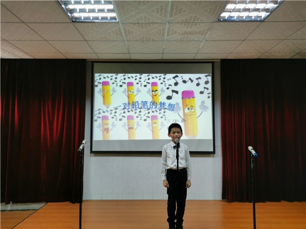 參賽節(jié)目是學(xué)生與指導(dǎo)老師精心篩選,有春風(fēng)點(diǎn)綴夢(mèng)之足跡的,如“我想”、“我想長大”、“彩色的夢(mèng)”、“一支鉛筆的夢(mèng)想”等;有夏日奏出感恩強(qiáng)音的,如“我驕傲,我是中國人”、“老師,我愛您”、“感謝”、“我愛我的祖國”等;有秋葉藏著收獲喜悅的,如“秋天的雨”、“聽聽,秋的聲音”、“秋之美”等;還有冬雪涌動(dòng)生命氣息的,如“生命!生命!”、“白樺”等;還有中華傳統(tǒng)經(jīng)典文學(xué)等。內(nèi)容的精彩不如學(xué)生現(xiàn)場(chǎng)演繹精彩,在主持人宣布開始后,節(jié)目精彩呈現(xiàn),報(bào)告廳不時(shí)傳來陣陣的喝彩聲和熱烈的掌聲。先由一年級(jí)童音傳儒的“生命!生命”開始,臺(tái)下的師生無不欣賞她小小年紀(jì)就有如此非凡表現(xiàn)力;接下來的同學(xué)表現(xiàn)出驚人的朗誦水平,全場(chǎng)學(xué)生都坐不住了,時(shí)而不時(shí)在引起了下面觀眾一陣歡呼,甚至站起來一起為他們打氣。臺(tái)上激情高昂的朗誦、傳神的動(dòng)作與臺(tái)下火熱的氛圍,形成“童音軟儒傳風(fēng)骨,康樂之星發(fā)強(qiáng)音”的多彩畫卷。