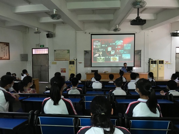沙溪鎮(zhèn)公安分局緝毒民警葉雍赟警官在講座中首先播放了鐘南山院士代言的毒品預防教育宣傳片,倡導青少年遠離毒品,享受“無毒青春,健康生活”。
