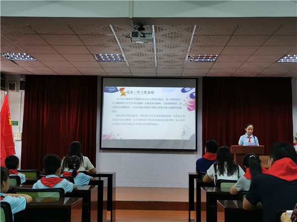 大會(huì)在激昂的少先隊(duì)隊(duì)歌聲中拉開序幕,少先隊(duì)員代表關(guān)子鈞、張曉怡兩位隊(duì)員也向全體隊(duì)員發(fā)出號召,要熱愛祖國,好好學(xué)習(xí),為了祖國的繁榮,為了民族的振興,向前,向前。接著是大隊(duì)長關(guān)子鈞對學(xué)校少先隊(duì)在本學(xué)年的工作用視頻的形式做了全面的回顧和總結(jié),同時(shí)也及時(shí)地反思了自己的不足和存在的問題,展望未來會(huì)做得更好。