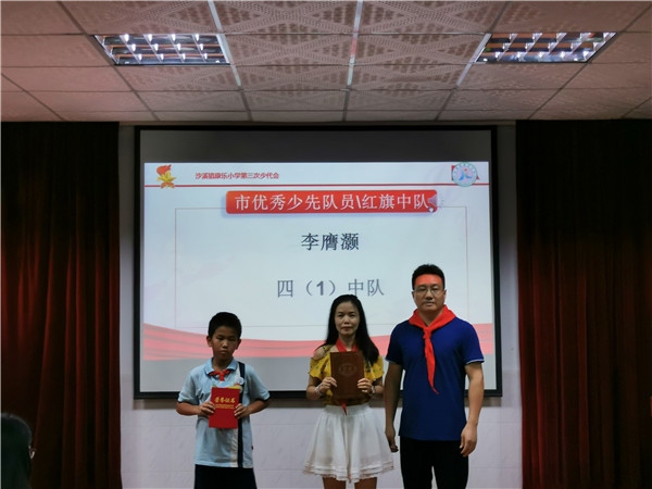 最后,大會(huì)還評選出表彰一批紅旗中隊(duì)、優(yōu)秀輔導(dǎo)員和優(yōu)秀隊(duì)員,并頒發(fā)證書以表鼓勵(lì)。至此,沙溪鎮(zhèn)康樂小學(xué)第三次代表大會(huì)在新一屆大隊(duì)委員的敬禮中,在隊(duì)員們的呼號聲和退旗曲中,本次大會(huì)正式拉下帷幕。但這也意味著新的開始。對隊(duì)員們和新一屆的隊(duì)委員們來說,手臂上的標(biāo)志不僅僅是一份榮譽(yù),更是一份責(zé)任,相信康樂小學(xué)的少先隊(duì)會(huì)在他們的帶領(lǐng)下,在全體隊(duì)員們的努力下,走向下一個(gè)輝煌。