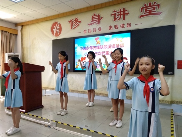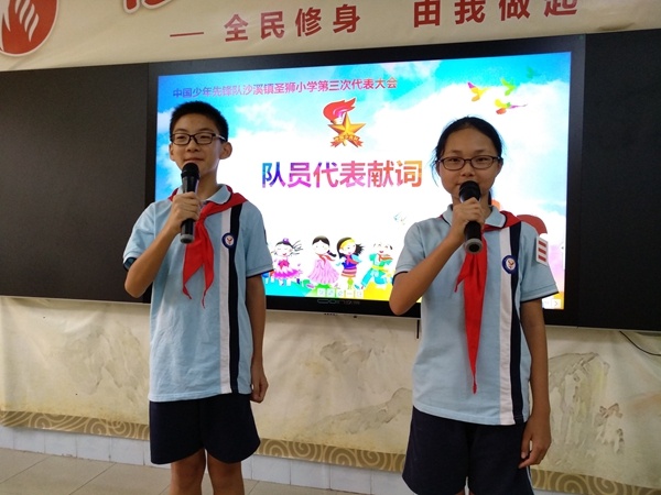 中國少年先鋒隊中山市沙溪鎮(zhèn)圣獅小學(xué)第三次代表大會于6月30日下午順利召開。沙溪鎮(zhèn)圣獅小學(xué)少工委主任黃慧芳校長、圣獅小學(xué)少工委副主任李春蘭主任、圣獅小學(xué)少工委副主任李毅主任、全體中隊輔導(dǎo)員及少先隊員代表等參加了會議。
