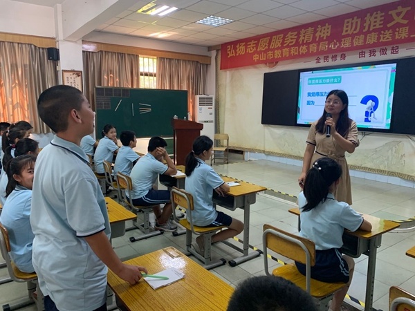 特殊的疫情,久別的校園,當(dāng)孩子們再次回歸課堂,面對來自生活、學(xué)習(xí)多重壓力的閉環(huán)式管理。針對特殊時期,沙溪鎮(zhèn)圣獅小學(xué)為了幫助孩子積極調(diào)整自身情緒和心理狀態(tài)、及時對孩子進行心理疏導(dǎo),6月28日下午,特別邀請沙溪初級中學(xué)心理健康教師羅丹給學(xué)校五、六年級全體孩子上了一節(jié)主題為《我的壓力我做主》的心理健康教育活動課。學(xué)校德育領(lǐng)導(dǎo)、心理健康教師及五、六年級四位班主任共同參與了課堂。