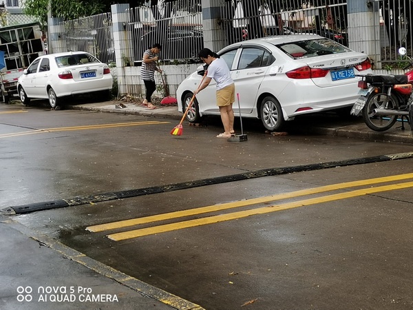 本次志愿服務(wù)活動(dòng)的任務(wù)是對(duì)下澤小學(xué)校園以及周邊道路、村巷進(jìn)行清掃?;顒?dòng)中,志愿者們發(fā)揚(yáng)不怕臟,不怕累的精神,干勁十足,頂著烈日,拿著掃把、鐵鏟、鐵鉗等工具,清除積存垃圾、泥沙等,電線桿、圍墻等處的小廣告也被消滅得一干二凈。通過(guò)大家連日的努力,不僅校園各處,學(xué)校周邊的道路、村巷都“重?zé)ㄐ骂仭?。此外,志愿者們還向附近居民們宣傳了文明衛(wèi)生的生活理念。