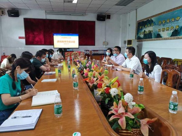 沙溪鎮(zhèn)衛(wèi)計(jì)局的傅娟娟局長在座談會上除了送上節(jié)日祝福,并對學(xué)校和老師們在新冠疫情防控工作做出的貢獻(xiàn)表示感謝。她希望老師們加強(qiáng)對孩子心靈成長的關(guān)注,培養(yǎng)身體健康、心靈快樂的學(xué)生。鎮(zhèn)教育指導(dǎo)中心的阮秀迎老師也送上了親切的節(jié)日慰問。