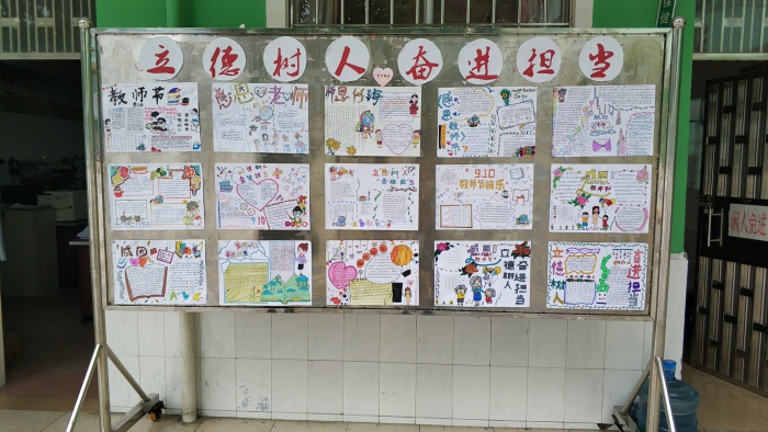 本周一的升旗儀式上,少先隊(duì)大隊(duì)部向全校同學(xué)發(fā)出慶祝教師節(jié)的祝?;顒?dòng)倡議,華強(qiáng)校園掀起了感謝師恩的熱潮。 1-3年級(jí)學(xué)生為老師準(zhǔn)備一張自制的賀卡。他們獻(xiàn)給老師的不管是精美的賀卡,還是粗糙的自制賀卡,都飽含著一顆顆稚嫩、純潔的童心;4-9年級(jí)的同學(xué)圖文并茂的手抄報(bào)則令老師們贊嘆不已。