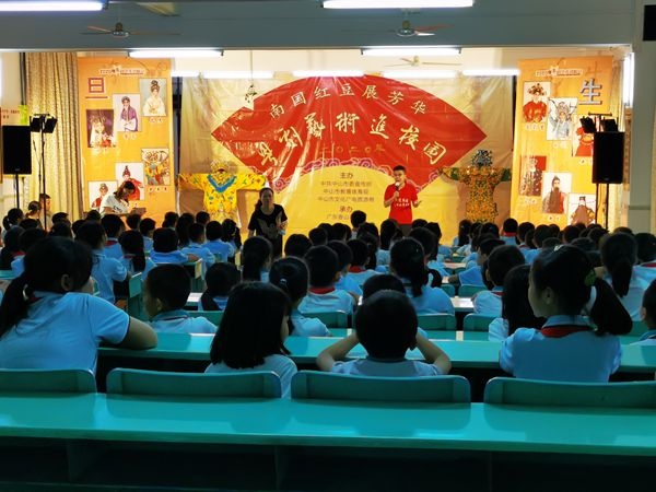 為貫徹落實黨的十九大精神,大力弘揚傳統(tǒng)戲曲文化,進一步加強傳統(tǒng)戲曲藝術(shù)的傳承普及,9月15日下午,在沙溪鎮(zhèn)中心小學(xué)電教室舉行了“南國紅豆展芳華”粵劇藝術(shù)進校園活動。該活動由中共中山市委宣傳部、中山市教育體育局、中山市文化廣電旅游局主辦,由廣東香山粵劇團承辦演出,沙溪鎮(zhèn)中心小學(xué)四年級全體師生參加了該活動。
