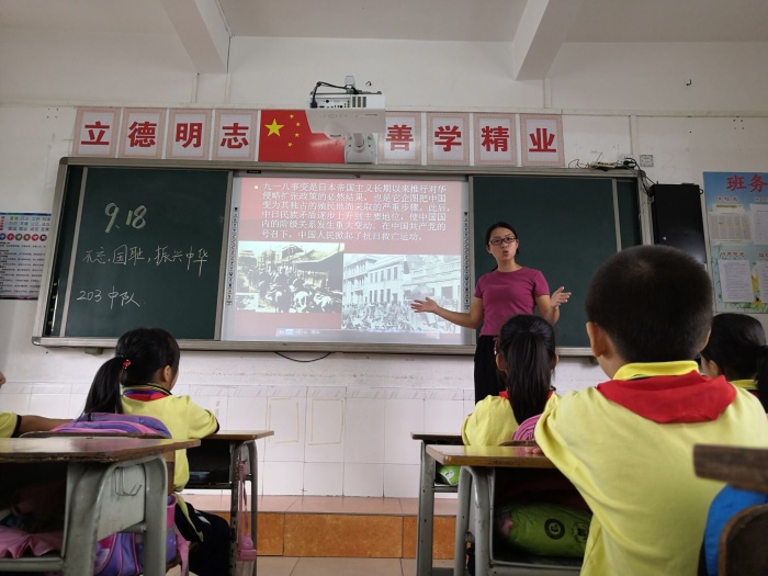在團(tuán)、隊會課上,各中隊開展了“勿忘國恥、愛我中華”為主題的9.18愛國主義教育主題隊會,拉開了紀(jì)念9.18事變89周年系列活動的序幕。