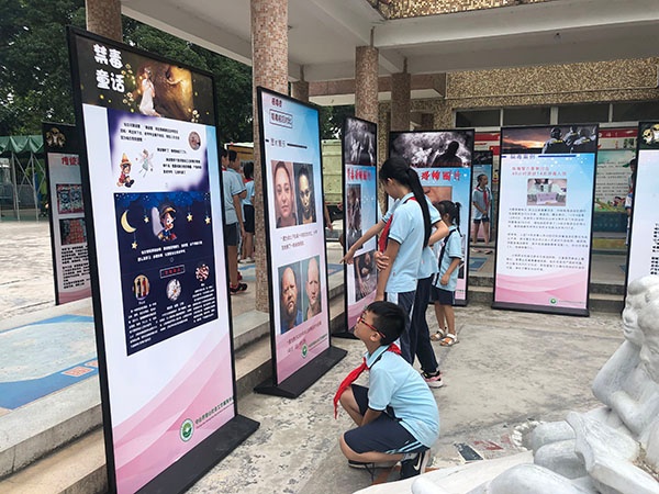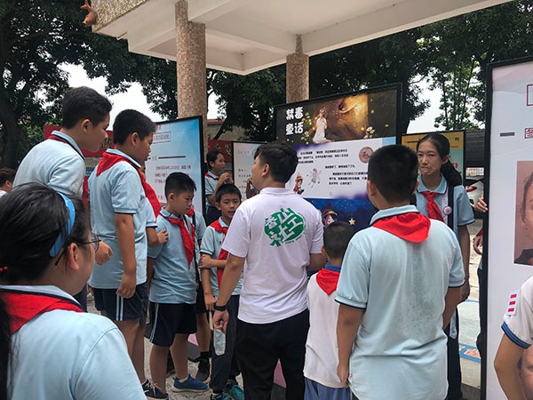 活動(dòng)通過禁毒掛圖宣傳展示,宣傳毒品的有關(guān)知識及國家有關(guān)禁毒、禁煙的法律法規(guī)。以具體實(shí)例說明感染后的副作用,毒品、 吸煙不僅危害社會(huì)、危害個(gè)人和他人健康,還會(huì)毀滅家庭。 因此加強(qiáng)對隊(duì)員禁毒、禁煙知識的宣傳教育尤為重要,用實(shí)實(shí)在在的案例教育師生們?nèi)绾螛淞⒄_的人生觀、 價(jià)值觀和法制觀, 得到了師生們的歡迎和認(rèn)可?;顒?dòng)中,禁毒社工用毒品的圖片展示向隊(duì)員講解了近期在網(wǎng)絡(luò)、淘寶上出現(xiàn)的毒品,讓隊(duì)員了解毒品種類、危害、易存在的場所及外在特征,并鼓勵(lì)隊(duì)員在日常生活中主動(dòng)積累禁毒知識,強(qiáng)化自身拒毒意識,以此更好防范毒品的變化多端。