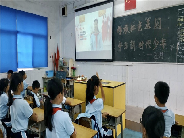 與此同時其他中隊在教室各自進行了“建隊71周年紀念日”主題隊會活動,他們重溫了隊史、誓詞,糾正了敬禮,最后還唱起了隊歌和觀看了視頻“致敬紅領(lǐng)巾”。