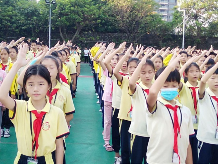 為慶祝中華人民共和國成立71周年,慶祝中國少年先鋒隊(duì)建隊(duì)71周年,教育引導(dǎo)廣大少先隊(duì)員聽黨話、跟黨走,用實(shí)際行動把紅色基因代代相傳,增強(qiáng)少先隊(duì)員光榮感,華強(qiáng)學(xué)校結(jié)合本校少先隊(duì)實(shí)際情況,開展了“傳承紅色基因 爭做新時代好隊(duì)員”主題隊(duì)日活動。