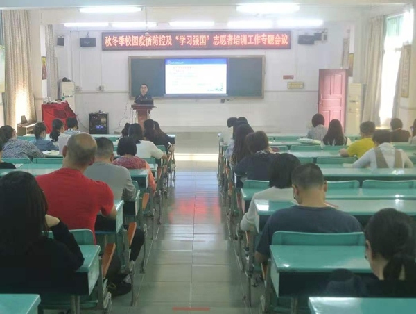 為了這次演練能高效完成,16日下午,黃賢軍校長主持召開了秋冬季校園疫情防控會(huì)議,全體教師參加。會(huì)上,黃校長介紹了秋冬季傳染病的傳播途徑、科學(xué)防控的基本原理、具體措施、科學(xué)的應(yīng)急預(yù)案,強(qiáng)調(diào)了防控關(guān)鍵要教室通風(fēng),保持距離,勤洗手。他還詳細(xì)部署了學(xué)校防控疫情演練工作。此次演練分為五個(gè)部分:上學(xué)、平時(shí)上課、食堂用餐、班級有學(xué)生嘔吐后的處理、放學(xué)后課室消毒,主要由六年級師生承擔(dān),黃校長總指揮,健康副校長徐大寬全程指導(dǎo),黃潤瓊主任發(fā)出指令和廣播,值日教師配合,其他師生觀摩。會(huì)后,全體教師認(rèn)真學(xué)習(xí)演練方案,為日常防控疫情做好充分準(zhǔn)備。