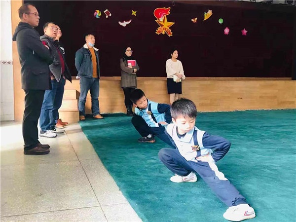 當(dāng)天由中山市武術(shù)傳統(tǒng)項(xiàng)目學(xué)校評(píng)估組領(lǐng)導(dǎo)、專(zhuān)家和沙溪鎮(zhèn)教育和體育事務(wù)中心葉晶老師蒞臨學(xué)校進(jìn)行了評(píng)估驗(yàn)收工作。評(píng)估組領(lǐng)導(dǎo)、專(zhuān)家們聽(tīng)取了吳發(fā)志校長(zhǎng)代表學(xué)校作題為《厚植武術(shù)文化 點(diǎn)亮精彩童年》自評(píng)報(bào)告;并聽(tīng)取了評(píng)估組領(lǐng)導(dǎo)、專(zhuān)家的推薦意見(jiàn),察看了校容校貌,全面檢查了學(xué)校武術(shù)功能場(chǎng)室、武術(shù)教學(xué)設(shè)備設(shè)施;觀摩了龍頭環(huán)學(xué)校武術(shù)隊(duì)的訓(xùn)練情況,查閱了迎檢檔案資料,對(duì)師生進(jìn)行了隨機(jī)的訪談。