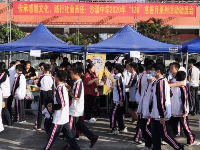 為積極響應(yīng)沙溪鎮(zhèn)“12·8”慈善籌款活動(dòng)的號(hào)召,弘揚(yáng)樂善好施、崇文重教的傳統(tǒng)美德,11月27日下午,沙溪中學(xué)在學(xué)校操場(chǎng)舉行“傳承感恩文化,踐行社會(huì)責(zé)任”愛心義賣活動(dòng),沙溪中學(xué)全體師生和部分學(xué)生家長義工參與了本次活動(dòng)。