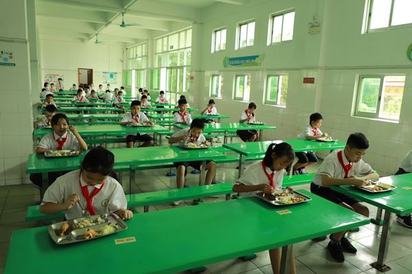 接下來(lái),孩子們上了期待已久的各科課程,十分愉快。下課后,廣播里傳來(lái)溫馨的提示語(yǔ),孩子們有秩序地上廁所,前后兩堂課的老師做到無(wú)縫對(duì)接。上午11點(diǎn)左右,學(xué)校順利通過(guò)市紀(jì)委復(fù)學(xué)督察組的檢查,完善的復(fù)學(xué)準(zhǔn)備工作得到領(lǐng)導(dǎo)的肯定。中午,全校同學(xué)錯(cuò)峰用餐,在老師的引導(dǎo)下,排隊(duì)間隔1米以上,固定位置,不交談,吃完有秩序地離開(kāi)。每班吃完,食堂工作人員立即對(duì)桌椅進(jìn)行消毒。整個(gè)過(guò)程安排保障了同學(xué)們的安全萬(wàn)無(wú)一失。午餐以后,孩子們?cè)诶蠋煹慕M織下回教室午休,在集體的大家庭里睡得很香。