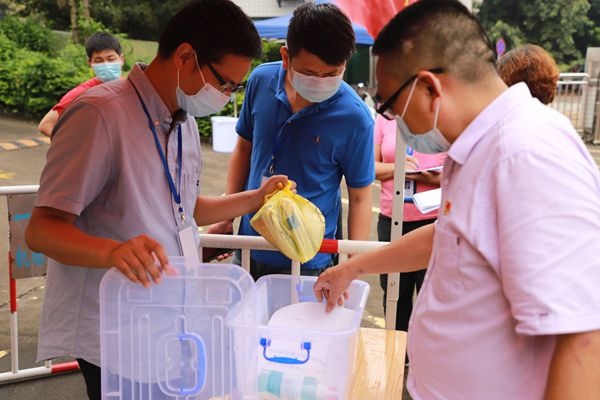 早上七點(diǎn),校領(lǐng)導(dǎo)和值日老師們?cè)缫言谛@的各個(gè)崗位嚴(yán)陣以待,等候同學(xué)們的到來(lái),雖然下著蒙蒙的細(xì)雨,依然阻擋不了師生們復(fù)學(xué)的熱情。同學(xué)們都戴著口罩自覺(jué)間隔1米以上,排隊(duì)檢測(cè)體溫,通過(guò)人臉識(shí)別進(jìn)入校園。家長(zhǎng)們?yōu)榱诵iT口交通順暢,也自覺(jué)配合學(xué)校的各項(xiàng)規(guī)定,一切秩序井然。
