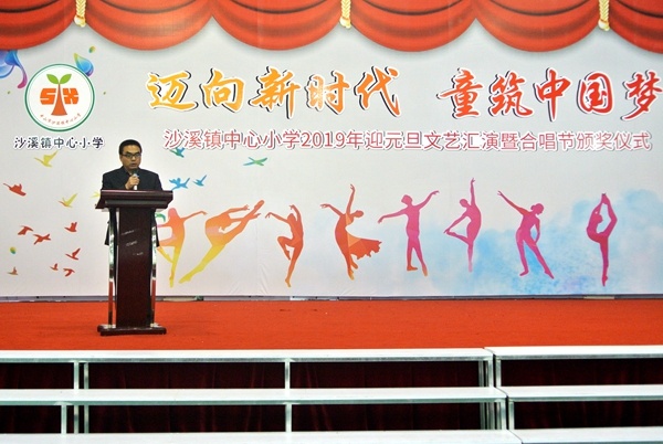 活動(dòng)開始,黃賢軍校長(zhǎng)代表學(xué)校熱情洋溢地作了新年致辭,他向全體師生及嘉賓們匯報(bào)了該校一年來學(xué)校工作開展情況以及所取得的成績(jī),并對(duì)學(xué)校今后在家校融合工作方面提出了構(gòu)想和規(guī)劃。沙溪鎮(zhèn)教育事務(wù)指導(dǎo)中心劉綺嫻副主任代表主管部門到會(huì)祝賀并致詞,她高度評(píng)價(jià)了該校教育教學(xué)等方面所取得的成績(jī),并對(duì)學(xué)校工作提出了要求和期望。接著進(jìn)行頒獎(jiǎng)儀式,分別對(duì)校合唱節(jié)專場(chǎng)、中山市中小學(xué)生愛國主義教育征文繪畫大賽集體和個(gè)人進(jìn)行了頒獎(jiǎng)。
