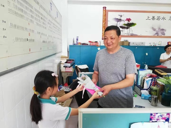 鮮花、詩歌、熱茶、掌聲、擁抱……全國的第35個教師節(jié)如期而至。在這個屬于教師的節(jié)日里,沙溪鎮(zhèn)中心小學舉辦慶祝教師節(jié)主題活動,共同為敬愛的老師慶祝節(jié)日。9月10日一大早,同學們一個個來到辦公室,為敬愛的老師獻上一朵鮮花;送上一張親手做的卡片;敬上一杯熱茶;朗誦一首小詩,充滿敬意地對老師們說聲:“老師,教師節(jié)快樂!”孩子們紛紛用自己的方式來頌揚教師這一光輝的職業(yè),感恩老師們年復一年的付出!